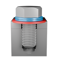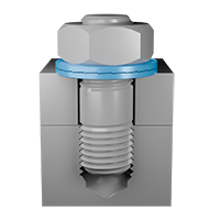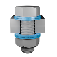 通孔通孔需要使用两组Nord-Lock防松垫圈——一组用于固定螺栓,另一组用于固定螺母。在拧紧之前,先将两个紧固件同时旋转,以闭合两组垫片上的楔形齿,从而最大限度地减少沉降。在拧紧螺栓时,确保螺母保持紧固。 |