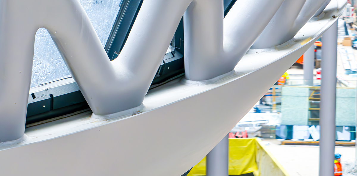 “屋顶分段重达数吨,必须用建筑起重机吊装到位。如果是采用焊接连接方式,则无法在组装完成后检查和校正分段的位置。但采用螺栓连接后,我们可以重新加工和微调定位,这给予了我们至关重要的灵活性, ”Michael Skopp 和 René Hesselbarth 说道。